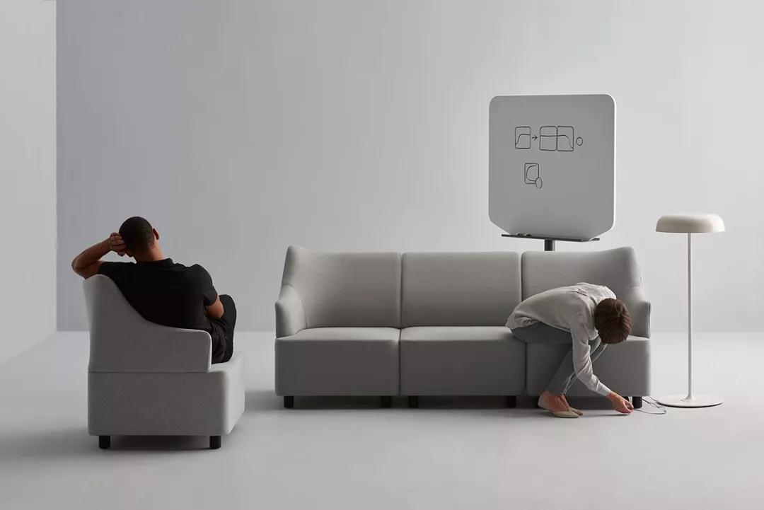 一處大型開放的樓梯連接上下兩個樓層,第三層則由服務樓梯進入。室內局部墻面采用面料軟包裝飾,這樣既有吸音功效,又帶來豐富的視覺效果。大型休閑區也以面料軟體家具來布局,不僅帶來舒適的休閑氣息,同時具有很好的吸音功效。