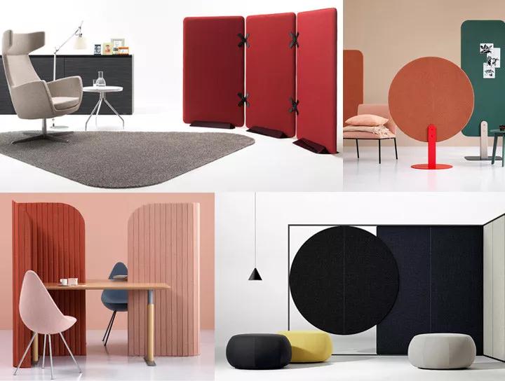 立式聲學隔屏當你需要在一個靈動的辦公環境里自由變換功能配置時,輕如羽毛般的設計讓移動和變化變得輕松自如,一切盡在掌控。立式聲學隔屏,極簡而時尚的隔屏,以簡潔的幾何形式——圓形和方形,為當代公共空間創建了一個實用又時尚的視覺裝飾元素。模塊化的獨立系統,深圳裝飾公司為開放工作空間或協作環境中靜靜的思考或安靜的交談創建一片自由空間,同時豐富的色彩也助力空間情感的表達。