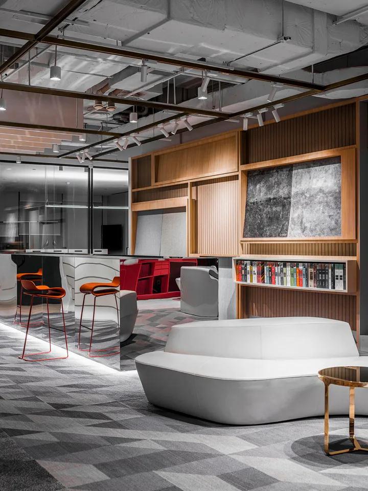 深圳裝飾公司的想法與該項(xiàng)目的初衷是一致的。設(shè)計(jì)師一直在考慮復(fù)雜環(huán)境中兩個(gè)空間之間的關(guān)系。因此,設(shè)計(jì)師削弱了展廳的部分展覽功能,以滿足辦公空間的需求和標(biāo)準(zhǔn)。通過(guò)大量的吸音材料和復(fù)雜的聲學(xué)處理,設(shè)計(jì)師減少了展廳區(qū)域的噪音和地面高度所帶來(lái)的回聲,并充分利用了展廳的優(yōu)勢(shì),例如水景,垂直植物和藝術(shù)品豐富了辦公環(huán)境,盡管展廳+辦公室的空間形式有所增加,此外,如何實(shí)現(xiàn)復(fù)雜性,但在最終展示空間時(shí)的使用體驗(yàn)卻達(dá)到了不同的體驗(yàn)。最初是零售商店的二樓。為了確保展館的地板高度要求,特別考慮了入口。為了優(yōu)化人員流動(dòng)并抵消辦公空間和展覽空間之間的直接聯(lián)系,設(shè)計(jì)師設(shè)計(jì)了一些散布在整個(gè)空間中的緩沖區(qū)。這些空間不僅緩沖了空間之間的關(guān)系,而且增加了空間的層次感。走進(jìn)大廳,一側(cè)是展覽廳,另一側(cè)是綠色植物,使展覽空間充滿生機(jī)。前臺(tái)聯(lián)合辦公室是展覽和辦公室并存的緩沖,而后場(chǎng)則是正式的辦公室區(qū)域。
