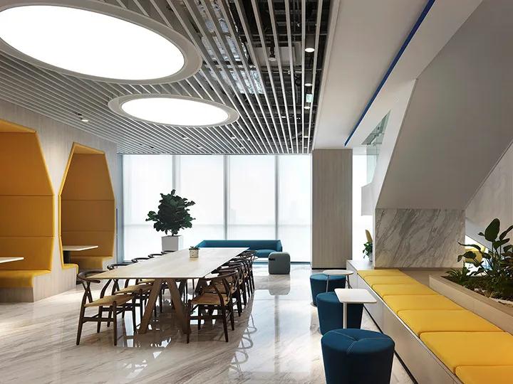 在深圳全球總部空間的設計中,甲方不僅保留了歐式的輕松和靈活性,而且融合了中國式的溫和與穩定,前臺位置線簡單,純白色但不加裝飾桌面給人清新清晰的感覺。背面板上的中文屏幕由類似于分子式的元素圖案組成。深圳裝飾公司有趣的細節在第一時間向參觀者巧妙地展示了公司的背景。前臺區后面是一個開放式辦公室和休閑區,鼓勵員工走出工作站,來到互動空間交流經驗和想法。辦公裝飾設計空間遵循輝瑞通常的色彩搭配,生動,現代且穩定。遵循企業管理團隊對中式風格的期望,深圳裝飾公司將中國風水的“氣”引入空間設計,以視覺方式表達了輝瑞普強對中國文化的尊重和向往,寬敞的會議空間也充滿了中國元素,無論是屏風,地毯還是墻壁裝飾,都充滿了中國園林的意境。走進會議室,似乎在各個涼亭之間徘徊,并在熙熙urban的市中心安靜下來。