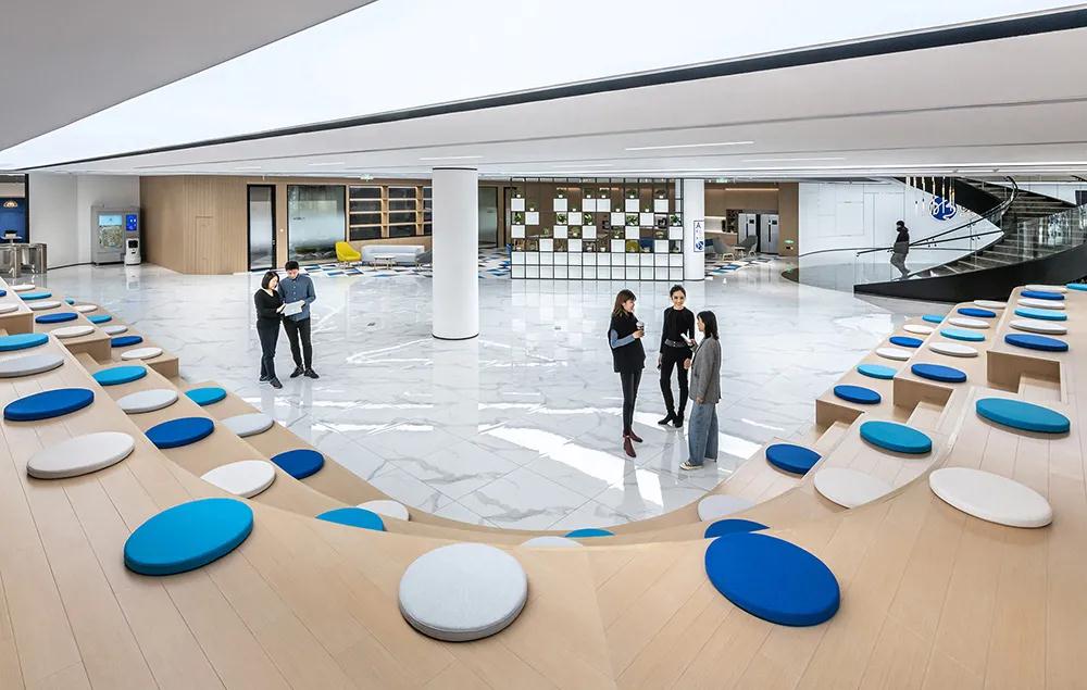 整體空間設計以井為標準,兼顧空氣、水、熱舒適、采光、心理健康等因素,使用更多天然材料,營造有利于健康高效工作的環境。多功能“明天廣場”配備樓梯空間和咖啡廳,讓員工在半正式的氛圍中交流、參加會議、工作 正門附近的社交網絡和螺旋樓梯增強了上下的可達性地板。一樓有大理石臺階和精心規劃的綠色植物,營造出活潑的氛圍。懸掛式螺旋水晶吊燈與螺旋梯相得益彰,象征著不斷崛起、不斷創新的企業文化。以城市規劃理念為基礎,結合穆在建筑、空間戰略規劃、室內設計、工程設計等專業領域的經驗,室內空間設計打造以員工為中心、促進溝通、與品牌形象相匹配的辦公室全球企業和人工智能領導者,我們強烈支持明略創造“人機合作更美好世界”的愿景。